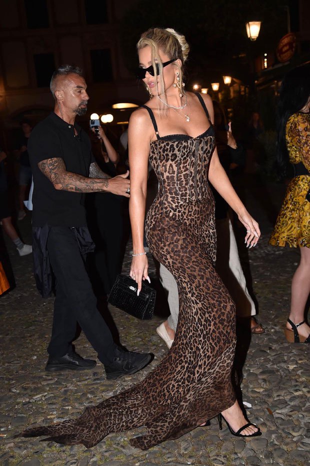 Tristan appears to be spending time with his daughter as his ex Khloe Kardashian, 37, is in Portofino, Italy for sister Kourtney Kardashian‘s wedding to Travis Barker. The Good American founder stunned for a Friday evening celebration in a leopard dress by Dolce & Gabbana, paired with a mini Kelly bag by Hermes. Khloe added diamond necklaces, rings and a bracelet to the look, along with a dramatic pair of cross earrings. She finished the outfit with black sunglasses and sandals.